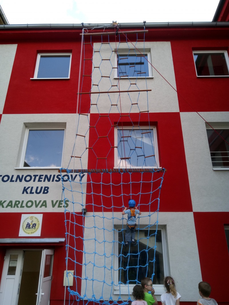 - Mobilný tyrolský traverz ( lanovka pre deti aj dospelých na horolezeckom lane)